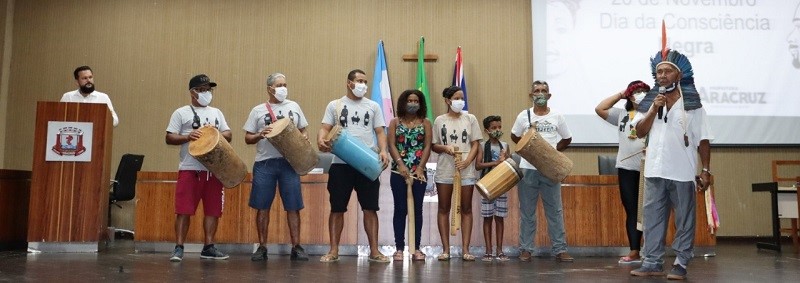 A prefeitura de Aracruz, por meio da Secretaria de Turismo e Cultura (Semtur), como forma de homenagear o Dia Nacional da Consciência Negra, comemorado no último sábado (20), promoveu na noite de sexta-feira (19), no plenário da Câmara Municipal, uma grande ação com várias apresentações voltadas ao público. O evento contou com as presenças do secretário de Turismo e Cultura, Moisés Mercier, do prefeito Dr. Coutinho, vereadores e lideranças comunitárias.