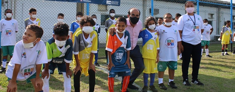 Após a cerimônia de abertura, todos os presentes acompanharam o ponta pé inicial das atividades esportivas. Esse projeto oferta aulas de futebol de campo para 280 crianças e adolescentes da Barra do Riacho, buscando contribuir com o desenvolvimento humano, por meio das ações educativas, esportivas e socioculturais, prevenindo assim, a ocorrência de riscos e vulnerabilidade social.