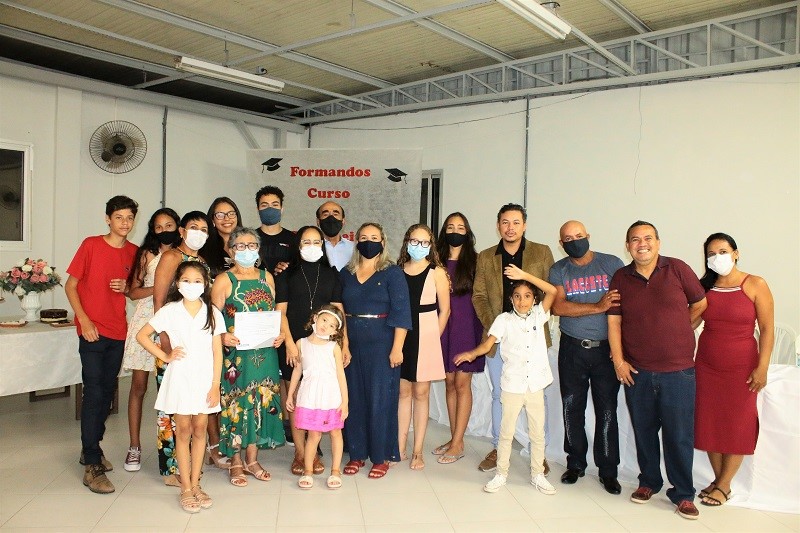 Após a falas das autoridades, um a um, os alunos foram chamados à frente para receber o certificado, e depois todos os presentes puderam se deliciar com os salgados, bolos e doces feitos pelos formandos.