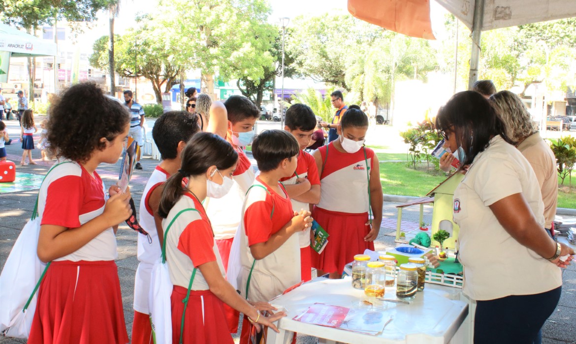 Para celebrar o Dia Mundial da Água, comemorado no dia 21 de março, a secretaria de Meio Ambiente de Aracruz (Semam) promoveu um evento na Praça Monsenhor Guilherme Schmitz, na manhã desta quarta-feira (30). O momento contou com a presença do secretário da Semam, Aladim Cerqueira ,e da subsecretária, Rhayrane Pedroni, além da população em geral e de escolas, tanto da rede municipal de ensino como privada.