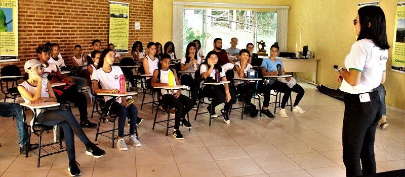 Dando continuidade às apresentações, o biólogo Luan Damásio e o químico Rhisley Alcroennes da VB Ambiental passaram aos alunos tudo o que envolve o aprendizado sobre a biodiversidade do parque, como a ciência, biologia, história e geografia. “Isso que é educação ambiental. Esse conjunto transversal de conhecimentos acabam atravessando todas as áreas”, ressaltou Luan Damásio.