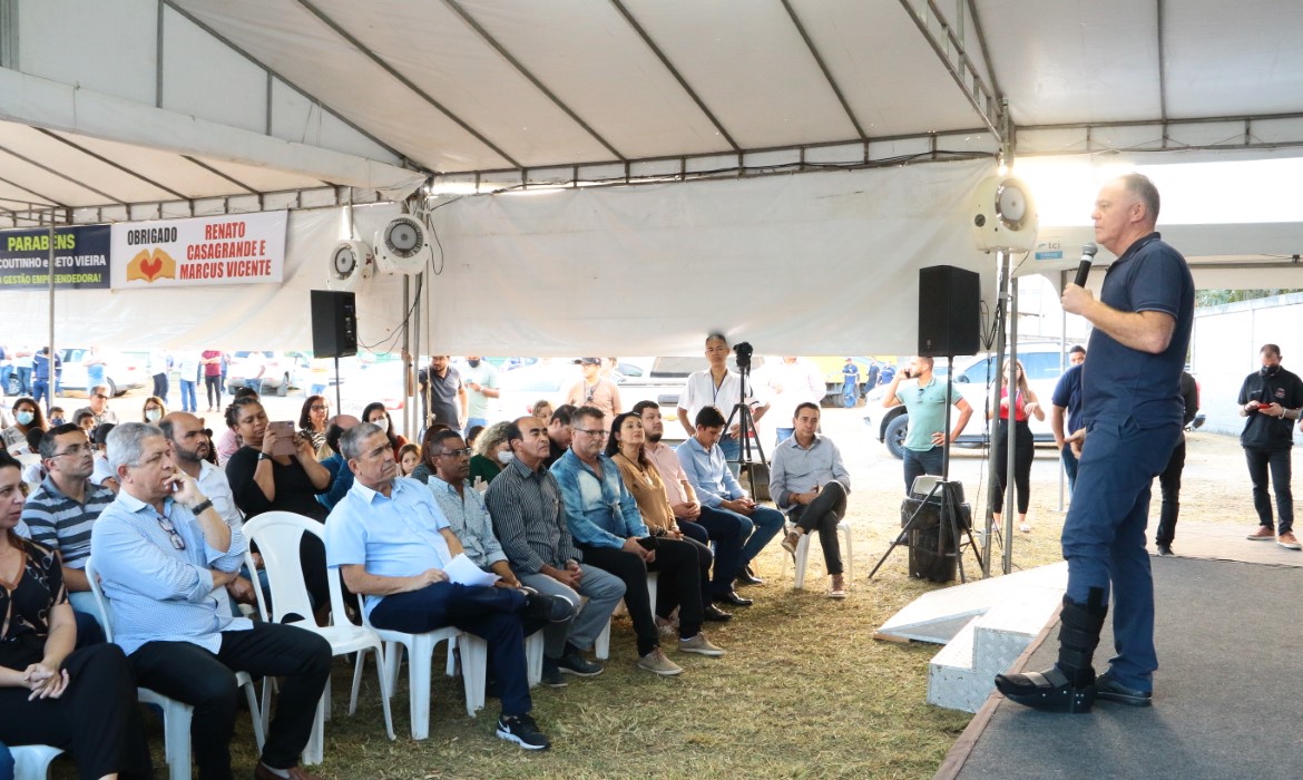 O governador do Espírito Santo, Renato Casagrande, esteve em Aracruz, na tarde desta terça-feira (21), e, na companhia do prefeito Dr. Coutinho e do vice-prefeito Beto Vieira, realizou o repasse de mais de R$ 55 milhões em investimentos em diversas áreas no município. A solenidade foi realizada no Centro Empresarial do Bela Vista e contou com a presença de autoridades, empresários e moradores locais.