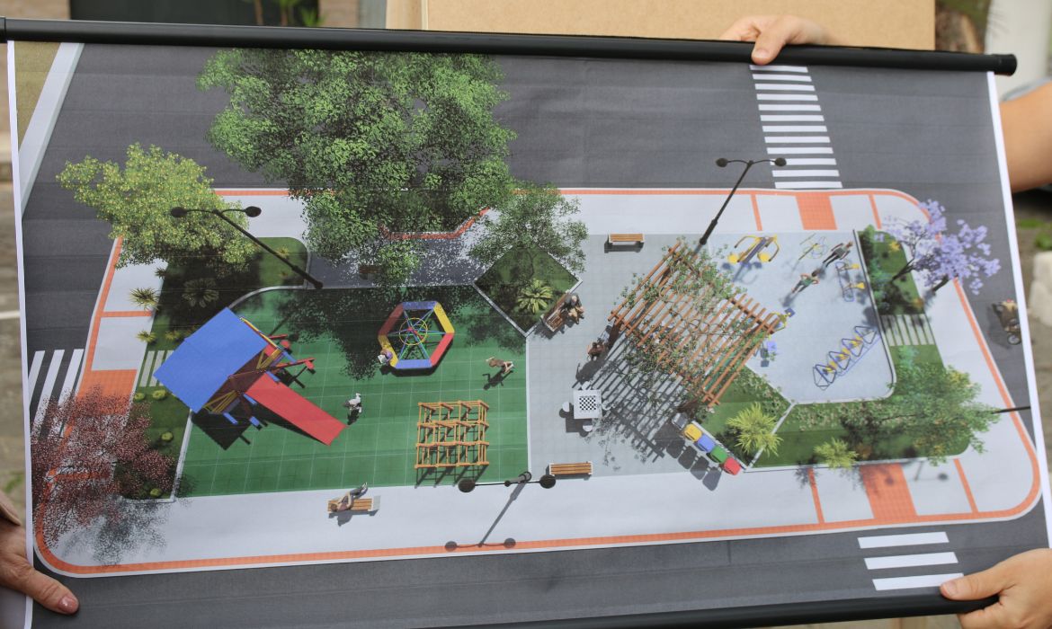 A reforma contempla área verde, bancos, academia popular em inox, iluminação moderna, playground para as crianças e área de passeio, com toda acessibilidade, permitindo o convívio social de toda comunidade.
