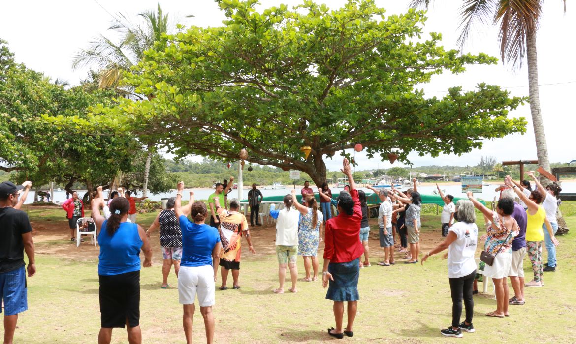 Para marcar o encerramento das atividades recreativas do Grupo de Convivência dos Idosos dos Centros de Referência da Assistência Social (Cras) das localidades de Santa Cruz, Caieiras Velha e Vila do Riacho, cerca de 30 vovôs e vovós se reuniram na praia do distrito de Santa Cruz para fazer exercícios físicos e confraternizar.