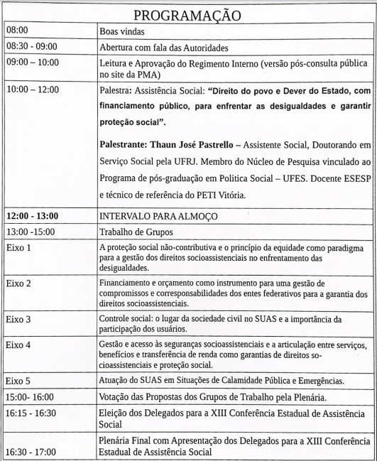Confira a programação da XIII Conferência Municipal de Assistência Social de Aracruz e inscreva-se!