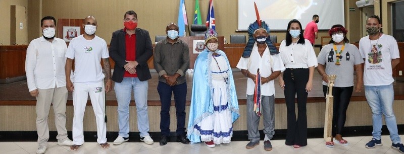 E como símbolo de luta e resistência negra, que está na raiz da cultura brasileira, o plenário da Câmara recebeu uma bela apresentação de uma roda de capoeira. Alunos da Associação Cultural Esportiva e Social 100% Capoeira, capitaneado pelo líder comunitário e mestre Geraldo Máscara, cheios de ginga, e aos sons de berimbaus e tambores, deram uma bela apresentação dessa arte marcial trazida da África ainda no século XVI.