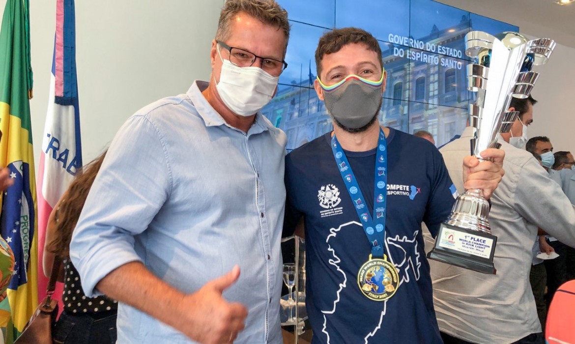 O prefeito em exercício encontrou e parabenizou o atleta capixaba de kickboxing, Edson Venturatto,