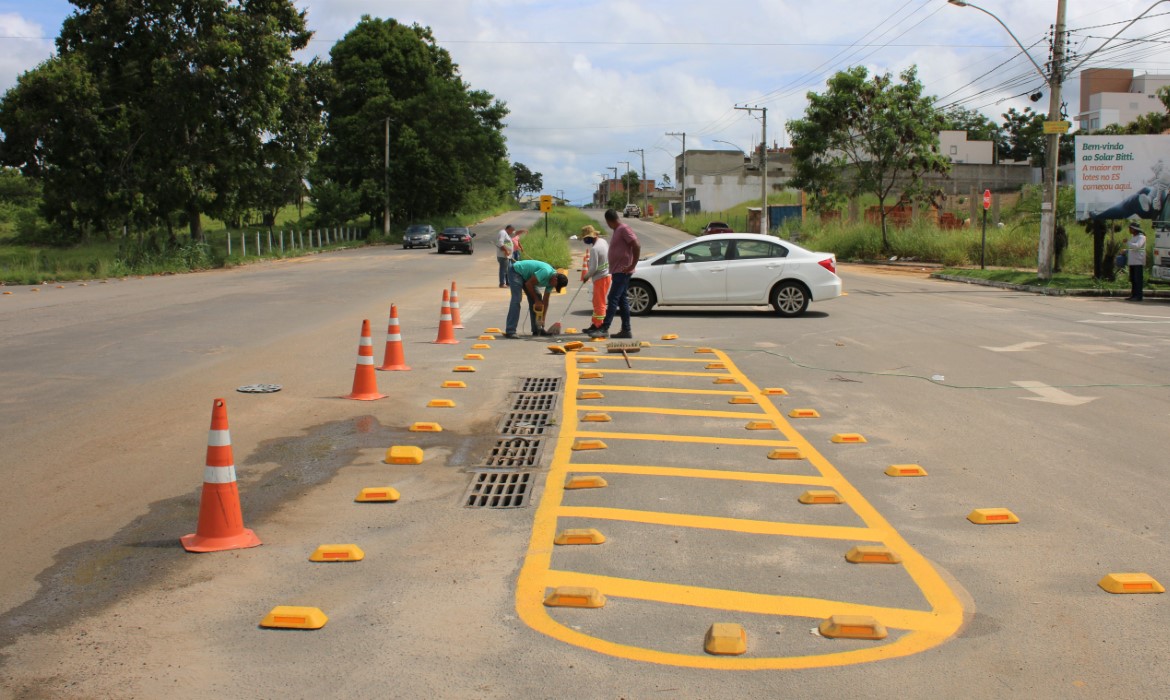 Prefeitura revitaliza sinalização horizontal no acesso ao bairro Solar Bitti