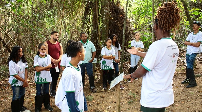 Dando continuidade às apresentações, o biólogo Luan Damásio e o químico Rhisley Alcroennes da VB Ambiental passaram aos alunos tudo o que envolve o aprendizado sobre a biodiversidade do parque, como a ciência, biologia, história e geografia. “Isso que é educação ambiental. Esse conjunto transversal de conhecimentos acabam atravessando todas as áreas”, ressaltou Luan Damásio.