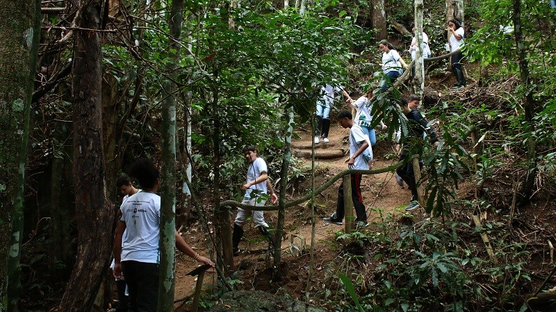 Nesta quarta-feira (25) foi a vez dos alunos do 9° ano da EMEF “Paulo Freire”, dos turnos matutino e vespertino, conhecerem as riquezas do bioma que cercam o Parque Natural Municipal do Aricanga ‘Waldemar Devens’. Essas visitas ocorrem por meio do Projeto “Escola do Aricanga”, que é parte do Plano de Educação Ambiental da Suzano, que atua em parceria com a Secretaria de Meio Ambiente (Semam) da Prefeitura de Aracruz, levando conhecimento e apresentando as características do parque. O objetivo é promover ações educativas e propiciar aos professores e estudantes conhecimento e percepção da importância ambiental com o contato direto na mata atlântica do parque.
