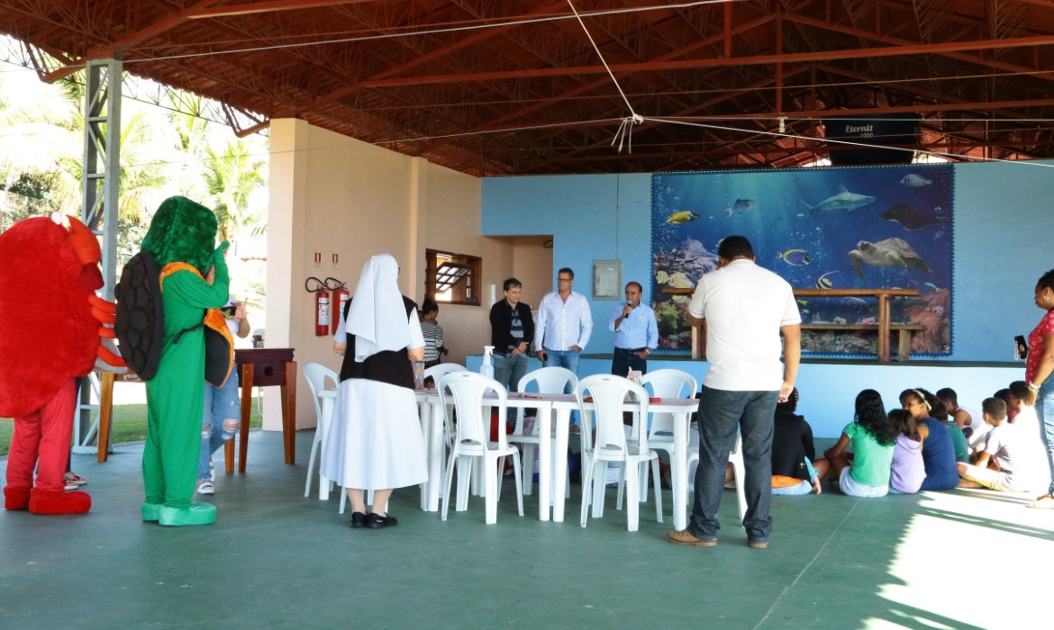 A equipe da Secretaria de Meio Ambiente (Semam) realizou diversas atividades com cerca de 20 crianças do Orfanato Recanto Feliz, localizado no distrito de Guaraná, na manhã desta quarta-feira (8). Com o tema “Uma Só Terra”, a ação reuniu o prefeito Dr. Coutinho, o vice-prefeito Beto Vieira e o secretário da pasta, Aladim Cerqueira, que foram recepcionados pela Irmã Regina, da congregação Beneditinas da Divina Providência.