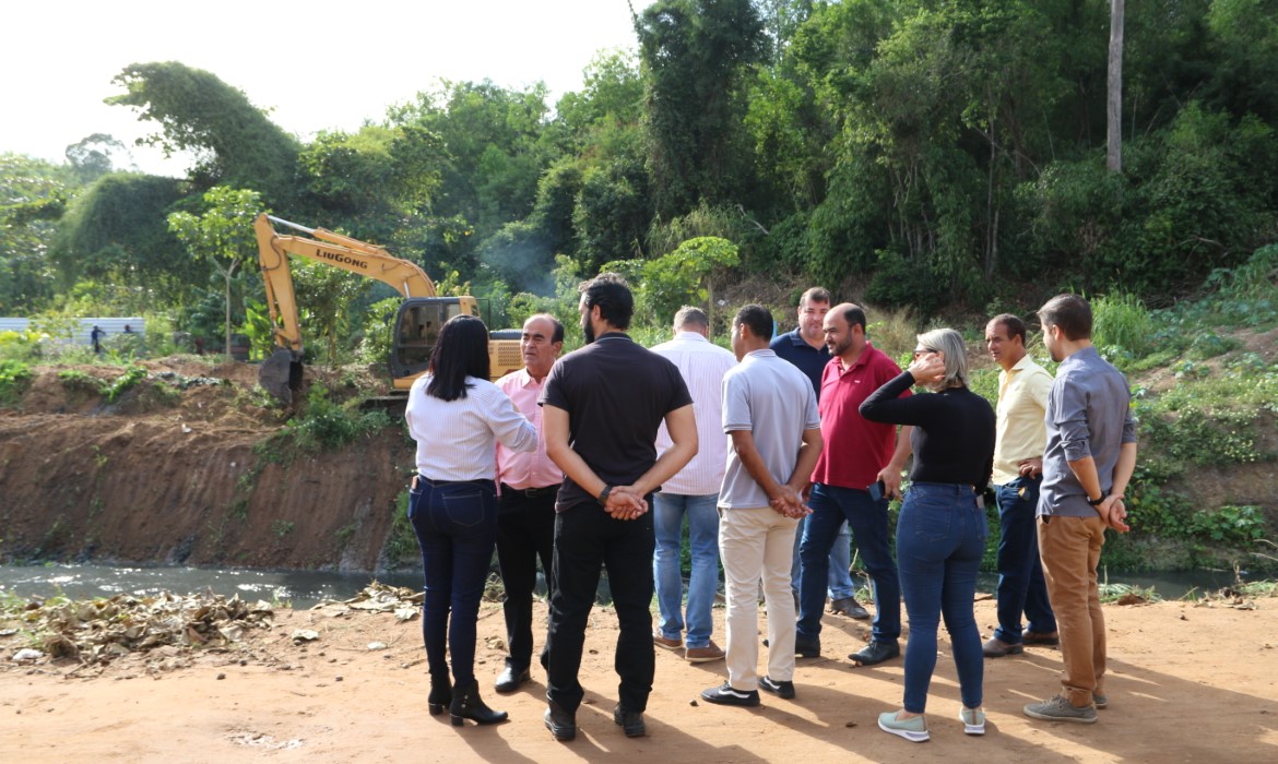 Após tantos anos de espera, moradores da Grande Bela Vista podem comemorar o início da tão sonhada obra de macrodrenagem do valão. As ações tiveram início nesta segunda-feira (20). O prefeito Dr. Coutinho, o vice Beto Vieira, vereadores, o subsecretário de Obras e Infraestrutura (Semob), Erlon Coutinho, e representantes da empresa responsável pela execução, estiveram na Portelinha para acompanhar o primeiro dia de trabalho.