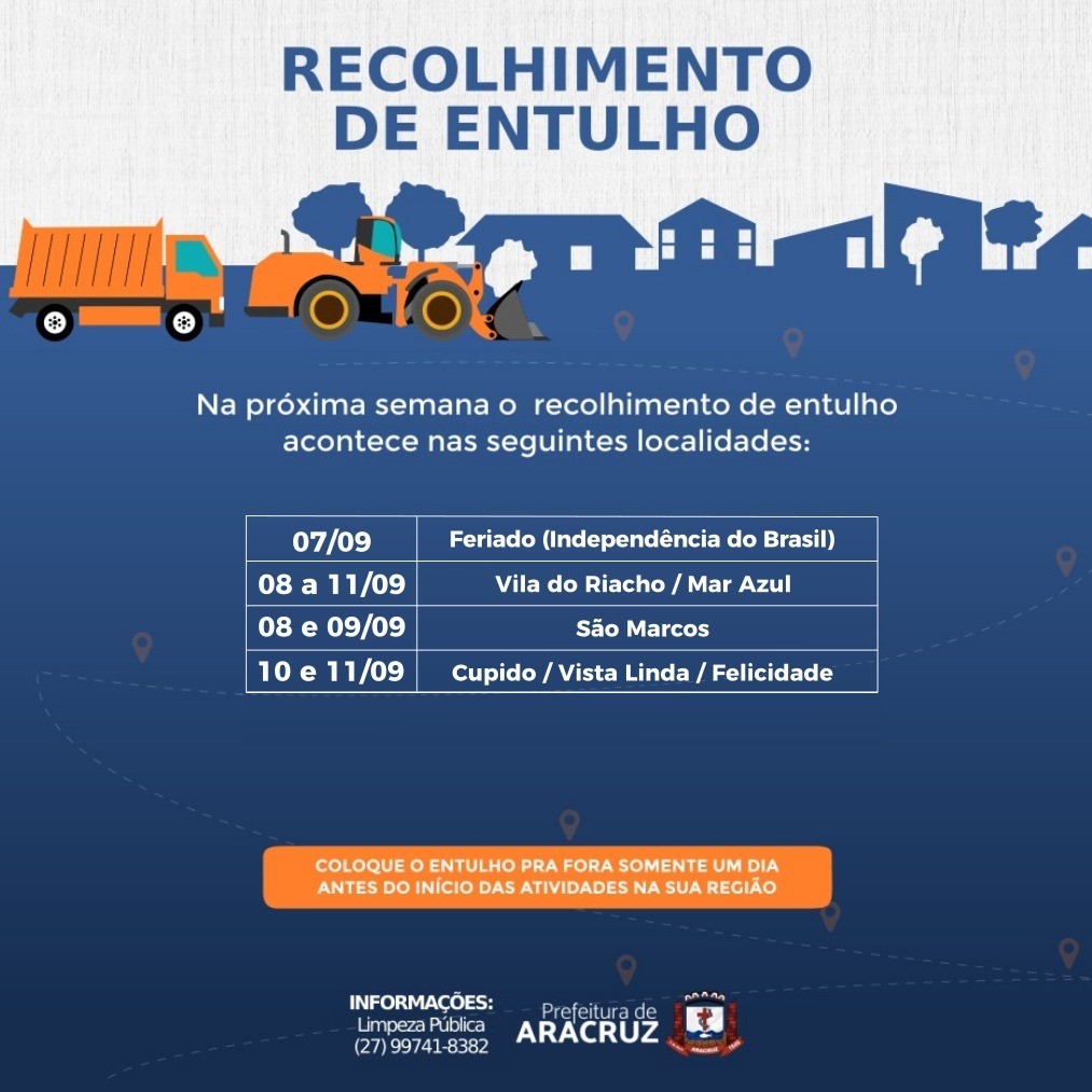 Recolhimento de Entulho - Cronograma de 08 a 11/09/2020