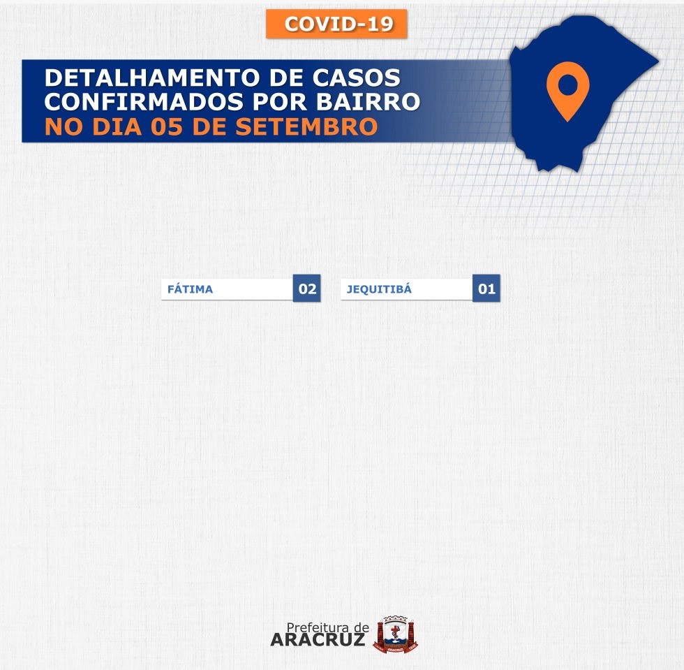 O município de Aracruz registrou 03 casos confirmados de Covid-19. Os bairros dos casos confirmados de hoje podem ser conferidos no segundo card desta publicação.