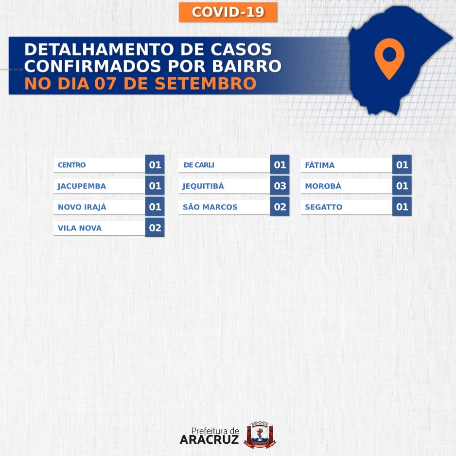 Segundo o Mapa de Gestão de Risco para ações qualificadas de enfrentamento à Covid-19, emitido pelo Governo do ES, válido entre os dias 07/09 a 13/09, o município de Aracruz está classificado como Risco Baixo.