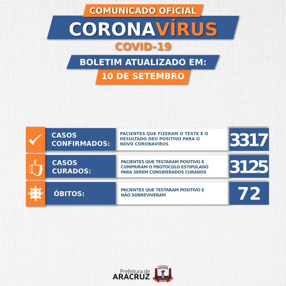 Confira o Boletim Epidemiológico do dia 10 de setembro