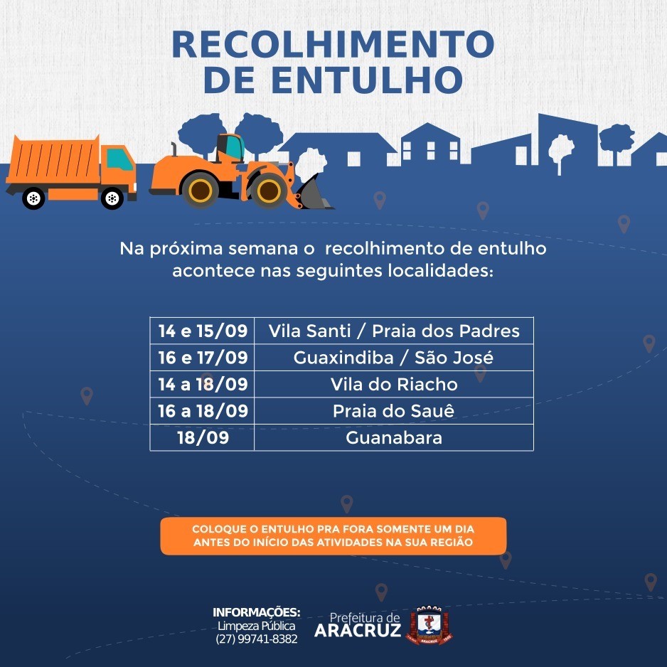 Recolhimento de Entulho - Cronograma de 14 a 18/09/2020