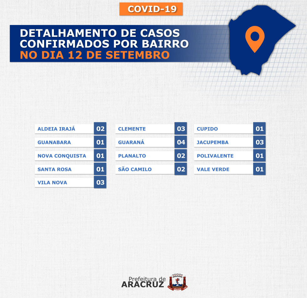O município de Aracruz registrou 25 casos confirmados de Covid-19. Os bairros dos casos confirmados de hoje podem ser conferidos no segundo card desta publicação.