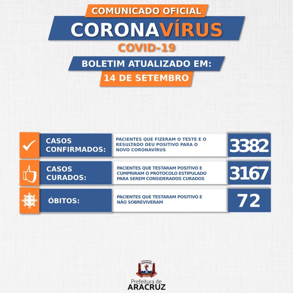 Confira o Boletim Epidemiológico do dia 14 de setembro