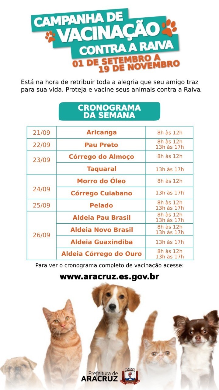 Cronograma da Campanha de Vacinação Contra a Raiva - Semana 4