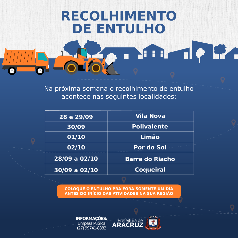 Recolhimento de Entulho - Cronograma de 28/09 a 02/10/2020