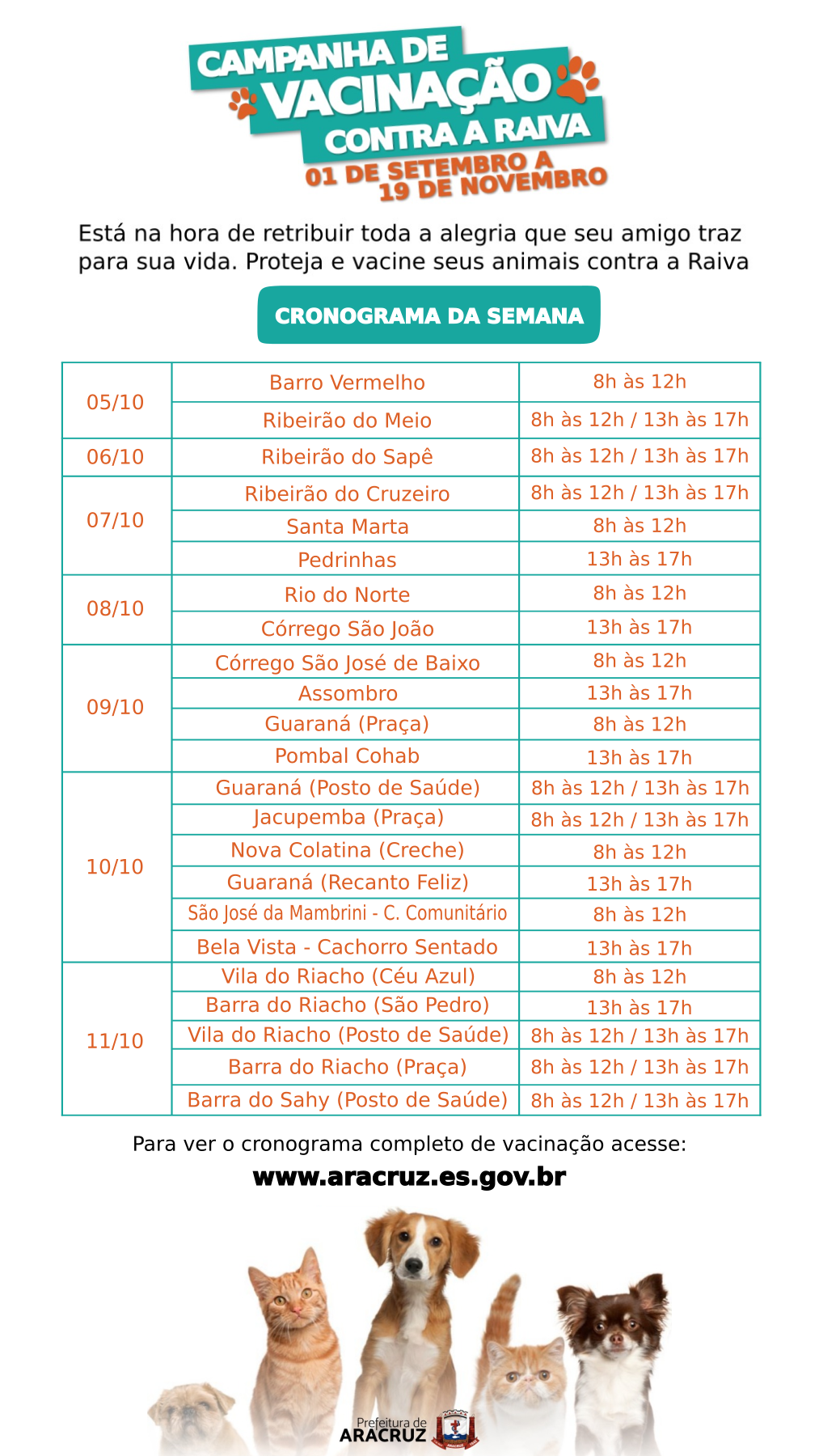 Cronograma da Campanha de Vacinação Contra a Raiva - Semana 6