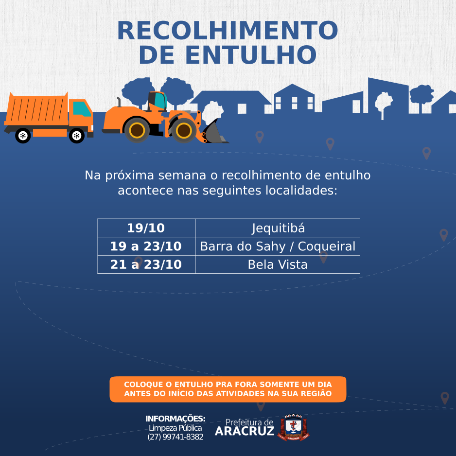 Recolhimento de Entulho - Cronograma de 19 a 23/10