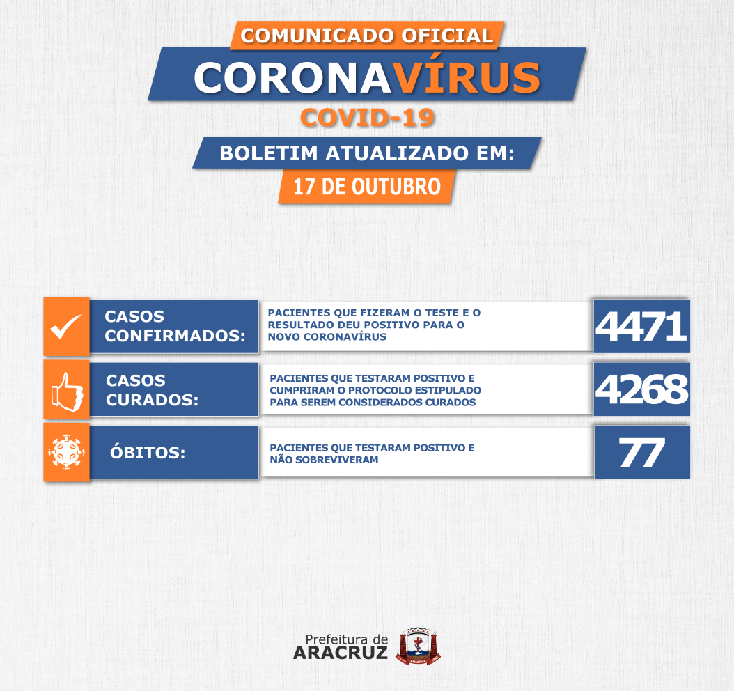Confira o Boletim Epidemiológico do dia 17 de outubro