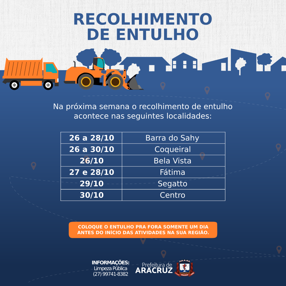 Recolhimento de Entulho - Cronograma de 26 a 30/10