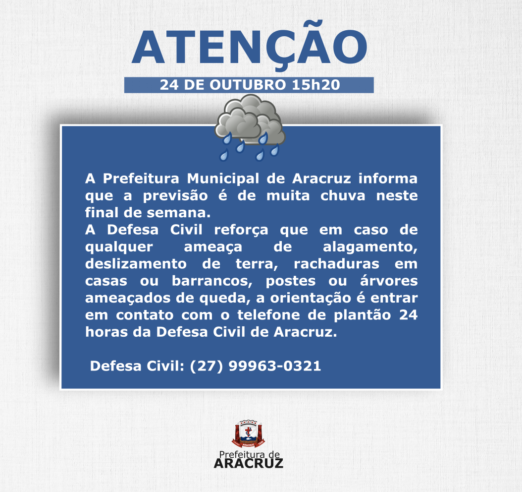 Alerta para grande volume de chuva neste final de semana