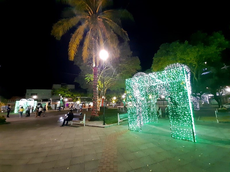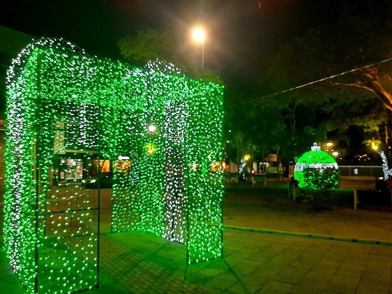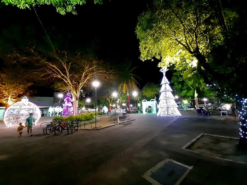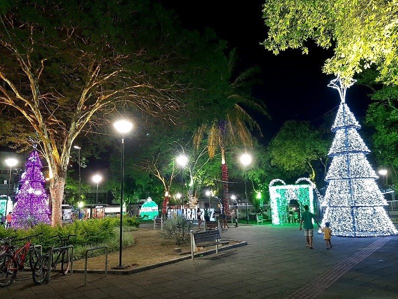 A prefeitura fez uma belíssima ornamentação na praça, que ganhou iluminação diversa tanto nas árvores nativas quantos nas armações em formas de casas e das tradicionais árvores de natal. “Estamos aqui na praça da Matriz para a abertura do Natal Luz. Tivemos o cuidado de enfeitar as árvores nativas e obedecemos as normas sanitárias para trazer alegria aos nossos moradores e aos visitantes. Também ficará por aqui o Papai Noel para que as crianças venham com seus familiares, mas sempre usando a máscara e mantendo o distanciamento. Queremos oferecer um pouco de alegria diante de todo esse sofrimento que estamos passando”, falou o prefeito Jones Cavaglieri no início da transmissão da live.