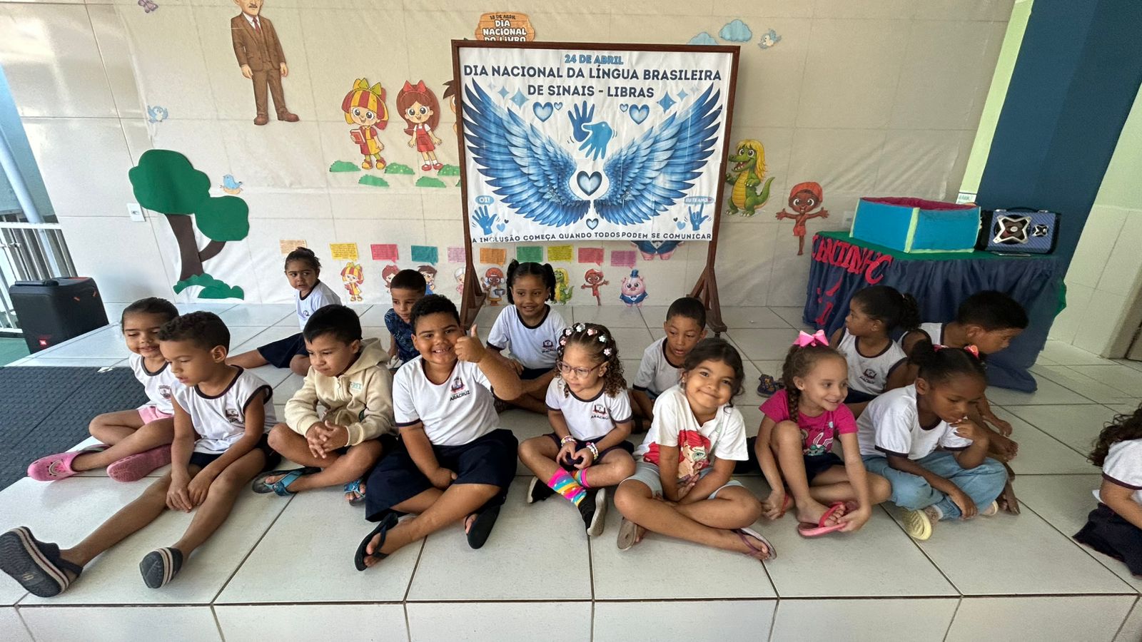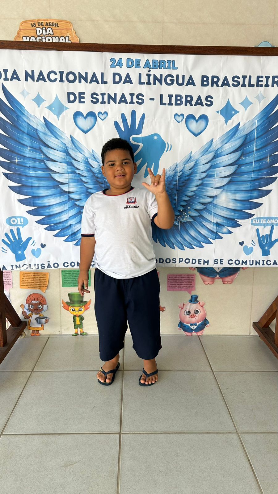 Como forma de fomentar a valorização da Língua Brasileira de Sinais, várias escolas da Rede Municipal de Ensino em Aracruz promoveram ações para homenagear esse dia tão importante para a educação bilíngue e para a garantia de direitos das pessoas surdas. O Grupo IV da professora Camila, no Centro Municipal de Educação Infantil (Cmei) Mãe Aurélia, em Vila do Riacho, trabalhou com a apresentação da música “A Baleia”, com as crianças reunidas cantando a letra por meio de sinais. Na Escola Municipal de Ensino Fundamental (Emef) Zilca Vieira Bermudes, em Vila Nova, foi gravado um vídeo de uma aluna transmitindo, por meio de sinais, a seguinte mensagem: “Olá, hoje comemoramos 24 anos da Lei de Libras, que é a língua utilizada pelas pessoas com deficiência auditiva e surdez e possibilita a interação e o aprendizado. Aprender Libras é aceitar pessoas surdas e respeitar sua cultura e identidade”.