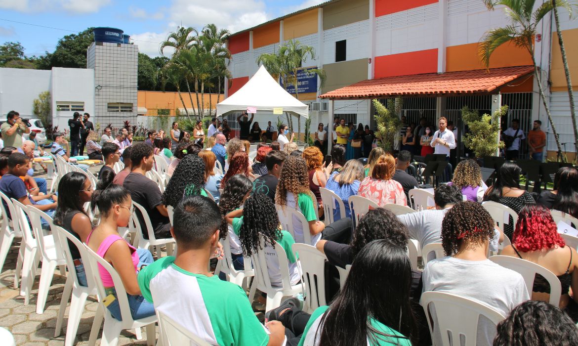 O prefeito Dr. Coutinho; a secretária de Ações Estratégicas, Jeesala Coutinho; de Educação, Jenilza Spinassé; de Saúde, Rosiane Scarpatt, de Desenvolvimento Social e Trabalho (Semds), Iohana Kroehling, e de Comunicação, Moisés Mercier, participaram do momento, além de professores, coordenadores escolares, pedagogos, estudantes, pais, representantes do Ministério Público (MPES), empresas e instituições.